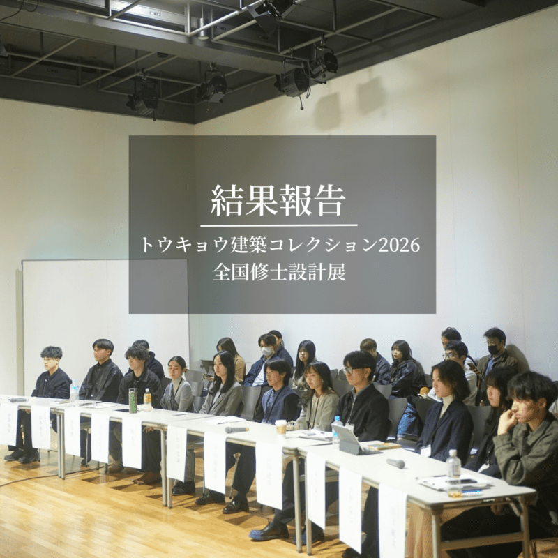 学生作品展 【結果報告】トウキョウ建築コレクション2026『全国修士設計展[公開審査 3/7 ]・論文展[公開審査 3/6 ]・企画展』|トウキョウ建築コレクション2026実行委員会 2026.03.06