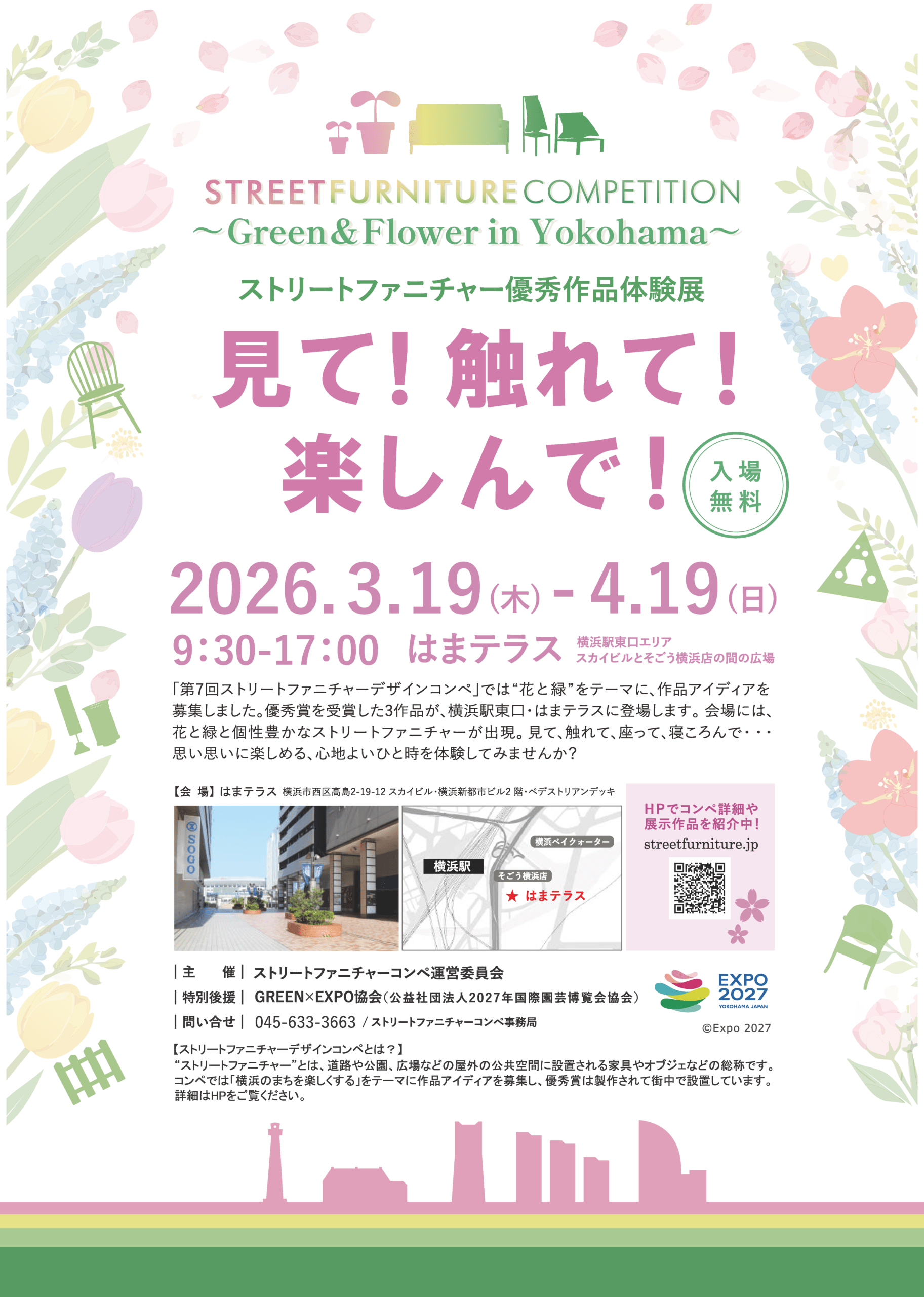 | 企画展名 | 第7回まちを楽しくする ストリートファニチャーデザインコンペティション ~Green & Flower In Yokohama~ ストリートファニチャー優秀作品体験展 「見て!触れて!楽しんで!」 |
