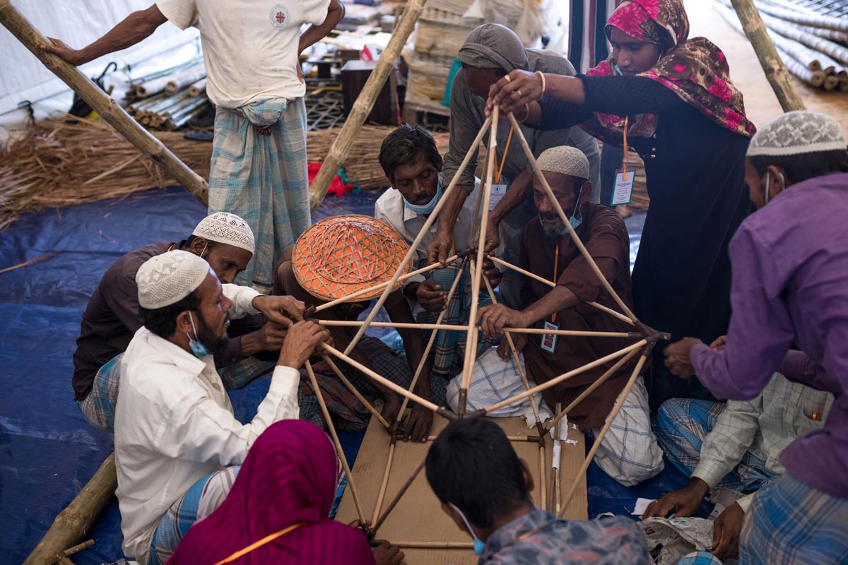 また、国全体の約7%が河川に覆われ、洪水で国土の約1/3が水没することもあるバングラデシュにおいて、住む場所を失った人のためにMTAが考案した可動式の住宅「クディ・バリ」(現地語で「小さな家」の意味)は、地域の人々の手により短期間で組み立て・解体することができ、洪水発生時のシェルターとしても機能します。MTAが立ち上げた財団F.A.C.E(The Foundation for Architecture and Community Equity)は、国内各地でクディ・バリを提供するだけでなく、ユニットを組み合わせることで、ロヒンギャの難民キャンプにおけるコミュニティセンターなど幅広い用途の建物に応用しています。