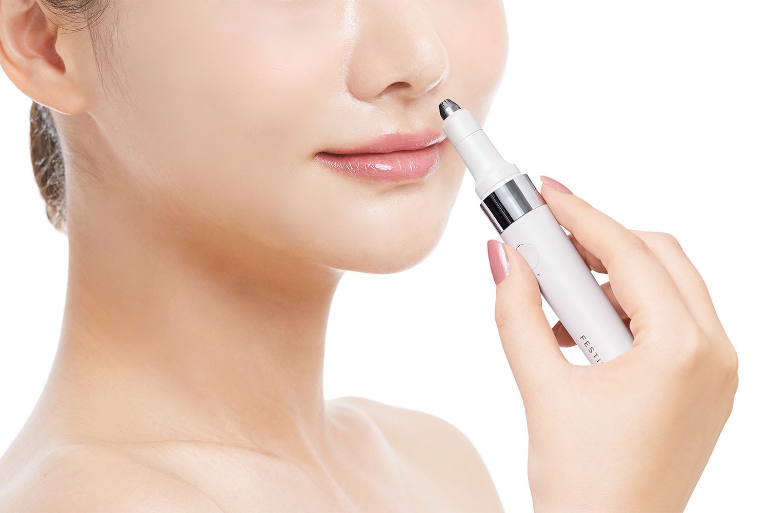 ペン型の小さなヘッドで直接刃が当たらない仕様。鼻の中のほかアイブロウの余分な毛にも。